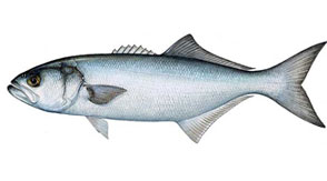 Bluefish are a migratory fish that live in the Atlantic Ocean from Nova Scotia to Florida. Bluefish get their name from the bright blueish tint found on the sides of their body. Bluefish migrate north as the ocean water temperature increases and are abundant off New York shores from May through November.