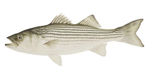 Striped bass is a coastal fish species well known to both sport anglers and commercial fishermen along the entire Atlantic coast of the U.S. The striped bass gets its name from the characteristic dark stripes that run horizontally along the fish’s sides.